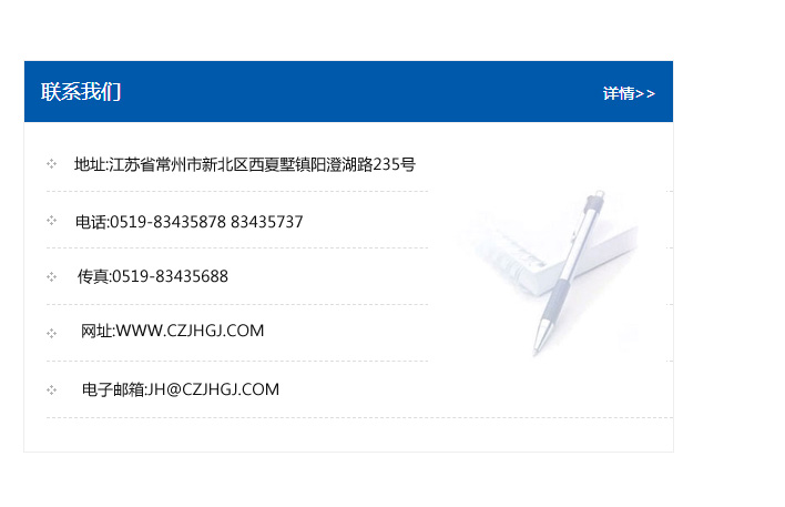 地址:常州市新北區友邦商務大廈1幢16、17層  電話:0519-85101652  傳真:0519-85112595  郵編:213022  網址:www_cz-jiayue_cn.shdinghan.com  郵箱:xiajifengaa@163.com